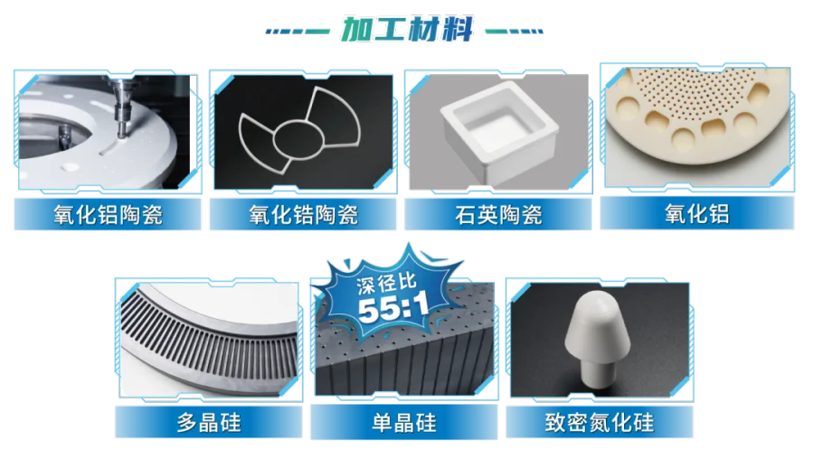 例如,加工氧化铝陶瓷,成功突破D0.06mm(深径比8.3:1)微孔加工难题,刀寿延长9.7倍、加工时间缩短62%。