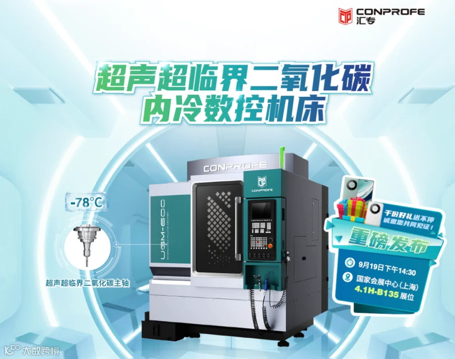 2023中国国际工业博览会将于9月19-23日在国家会展中心(上海)举行。9月19日下午14:30分,汇专将在4.1H-B135展位重磅发布超声超临界二氧化碳内冷数控机床,并展示多项自主研发的领先技术、创新产品与应用方案。
