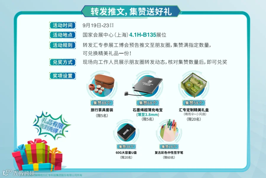 扫码登记信息,预约参观,展会举办期间莅临汇专展位现场,即可领取精美礼品一份!