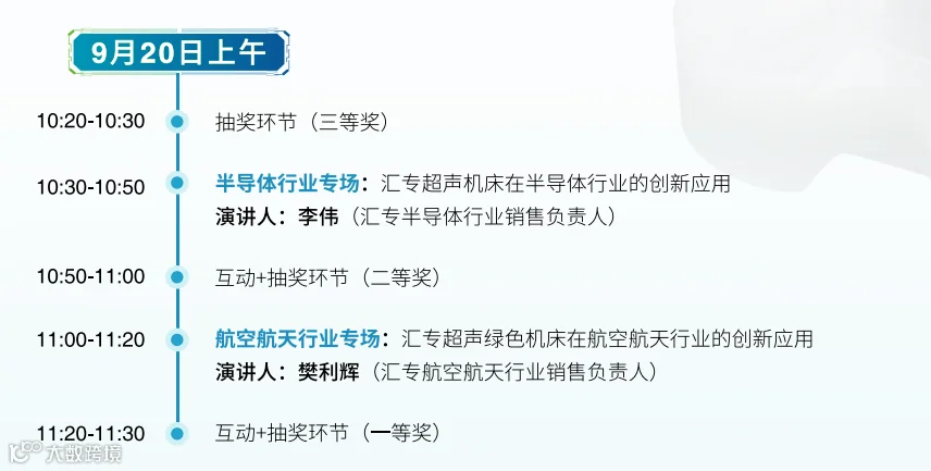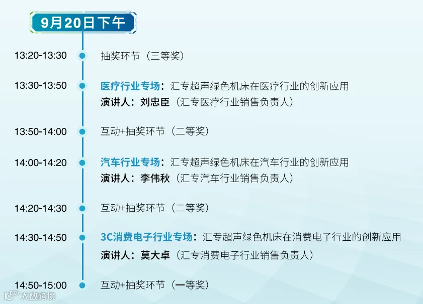 在干货价值拉满的论坛环节,我们将分享汇专超声绿色机床在半导体、航空航天、医疗、汽车、3C消费电子行业的创新应用和典型案例,期待与您共同交流、观点碰撞、拓展思路,共探高效环保高端制造新趋势。