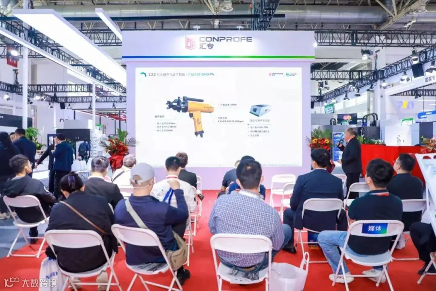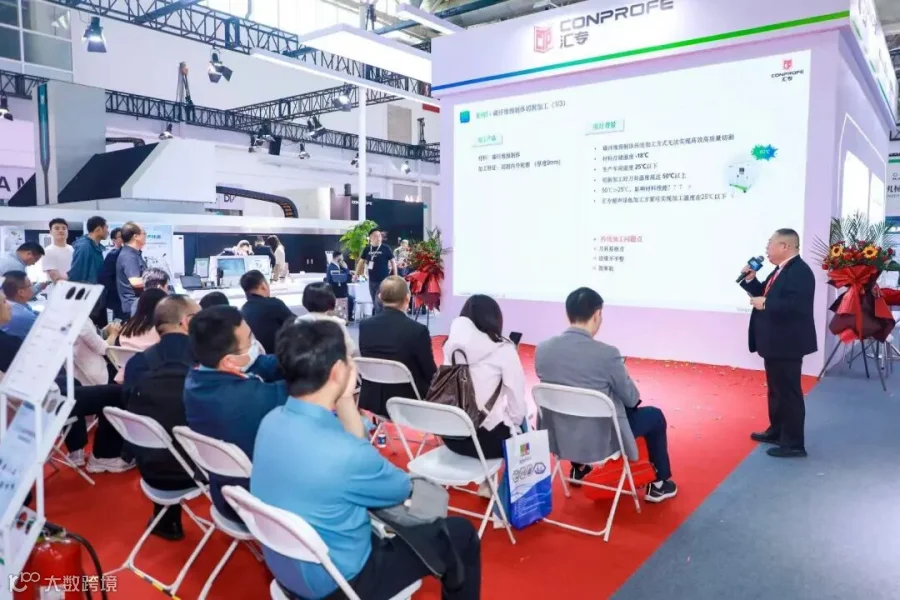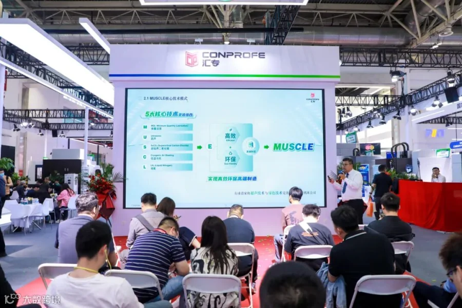 开展首日,汇专展位举办了 “超声领航,绿色智造” 主题新品发布会,重磅发布汇专超声绿色技术最新研发成果——双超声绿色复材龙门五轴联动加工中心。该加工中心搭载双超声、双绿色系统,成功突破航空航天行业复材加工瓶颈,充分展示了汇专在高端超声绿色机床领域的领先地位。