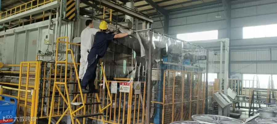 3月21日热工黎杰恒、陈灿文、刘瑞祥和设备姚巨豪加班对三线热处理进料口增加防漏热罩。