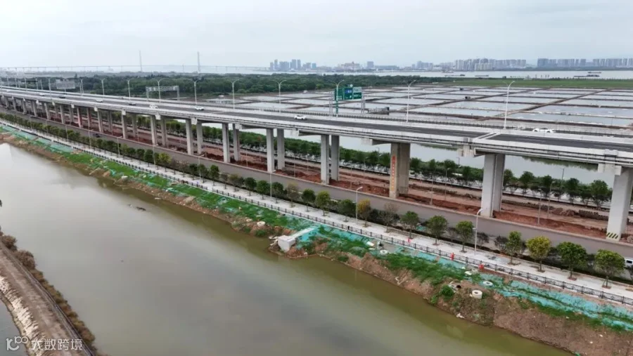 该项目位于万顷沙镇,北起十六涌半,南至规划滨海路,全长约5997米,其中道路长约4355米,桥梁长约1642米。作为城市主干路,其主线设计时速达60公里,辅道时速40公里,涵盖道路、桥梁、排水、电力等多项工程建设。