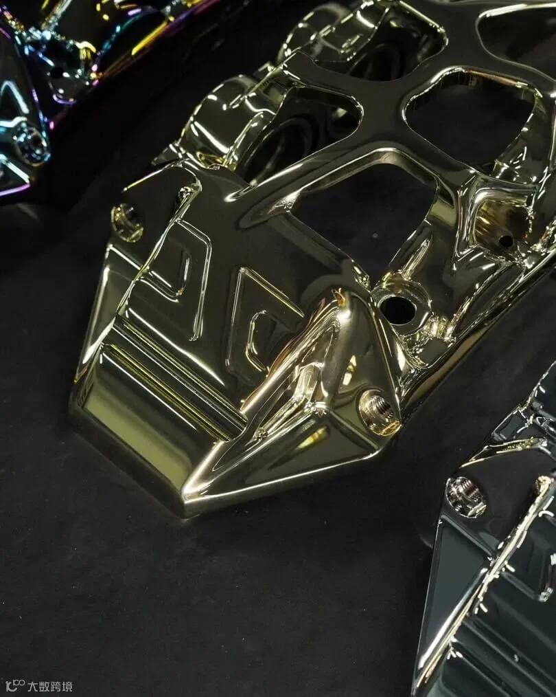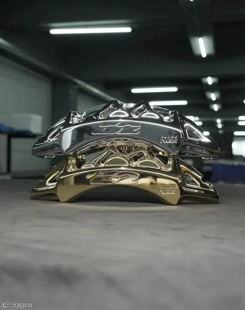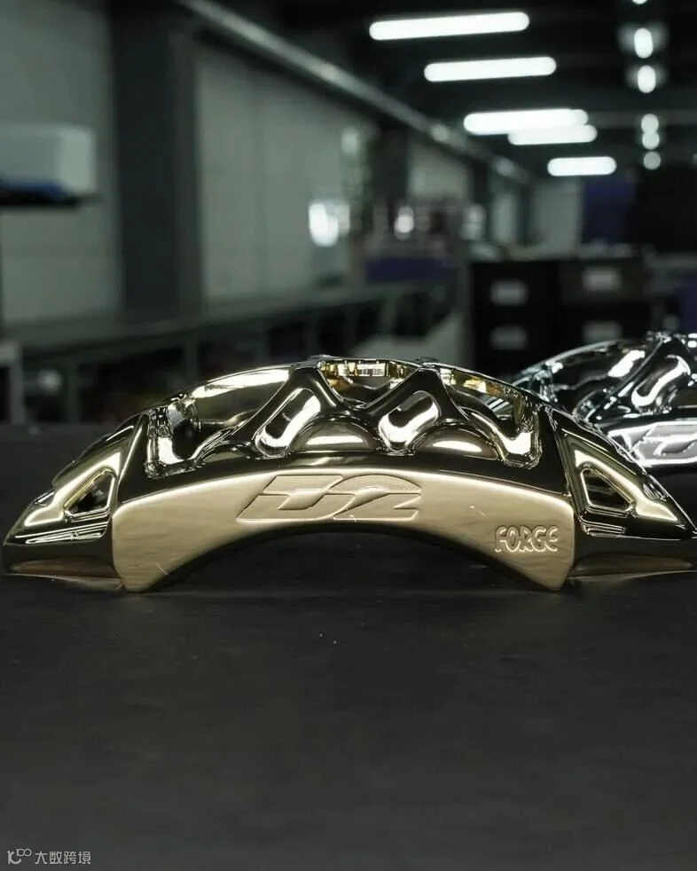 运动空心卡钳由铝制成;我们首先通过整体锻造工艺形成主体,以达到排列晶粒结构的效果。然后应用CNC 3D加工技术雕刻出镂空设计。该产品的特点是减轻重量,加快散热,有效降低刹车温度,增强制动力。它通常出现在高级 GT 赛车上。 锻造一体式铝制卡钳。