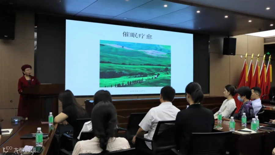 临近最后,一场催眠冥想让大家从匆忙紧张的工作节奏中短暂抽离出来。通过深呼吸和思维想象,大家闭上眼睛、放松身体肌肉,尽情感受当下,实现了身心的疗愈。