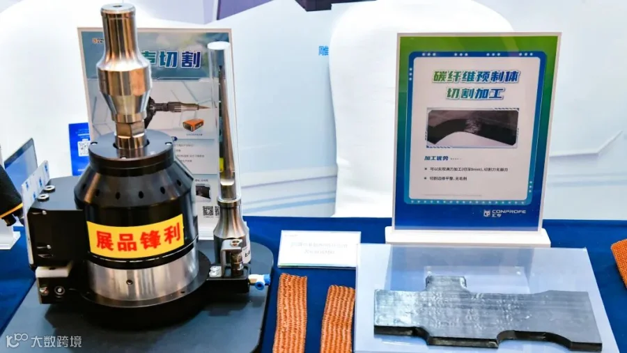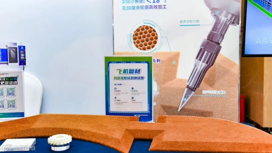 汇专展台同样看点满满,展示了超声钻、超声切割系统、超声刀柄、超整硬刀具等创新产品及飞机复材特征提取综合测试件、碳纤维预制体等特色工件。