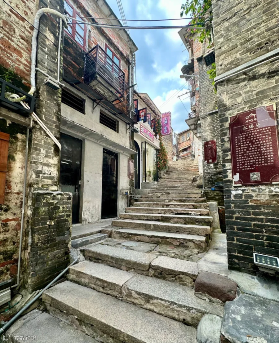 拾级而上,脚下的33级青石台阶仿佛在诉说着岁月的故事。墟顶街两侧,南洋风格的骑楼建筑鳞次栉比,彩色玻璃窗、罗马柱等中西合璧的元素随处可见,见证着当年华侨归乡建设的开放胸襟。近年来,随着电视剧《狂飙》的热播,这里成为热门的影视打卡地,“旧厂街”的熟悉场景引得姐妹们争相拍照留念。