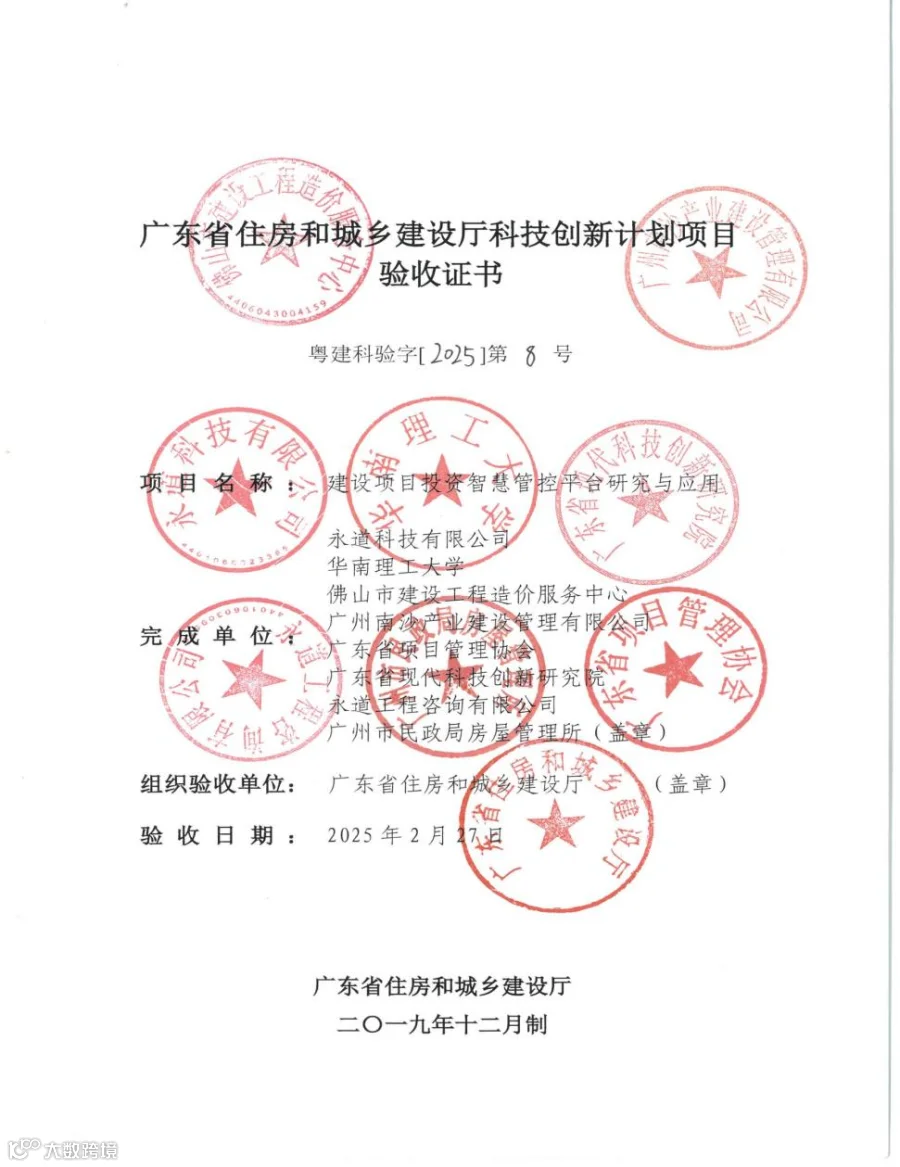 近日,由广州南沙产业建设管理有限公司联合永道科技、华南理工大学等单位共同研发的"建设项目投资智慧管控平台"顺利通过广东省住建厅验收。