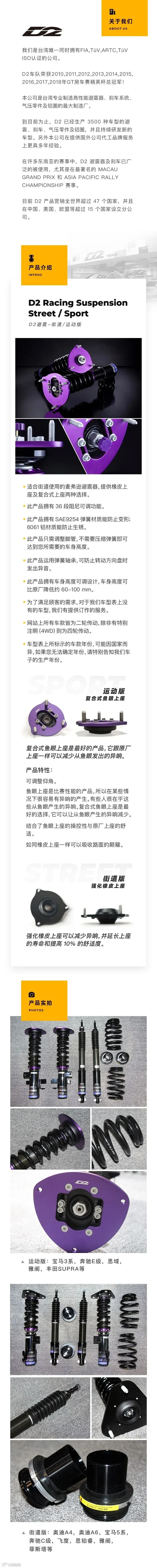 本期D2RACING给大家带来这台 雷克萨斯UX200 安装D2绞牙避震器(街道版),主要设计方向是针对车辆操作性的提升,拥有36段阻尼可调及车身高低可调,又兼顾了日常出行的需求。