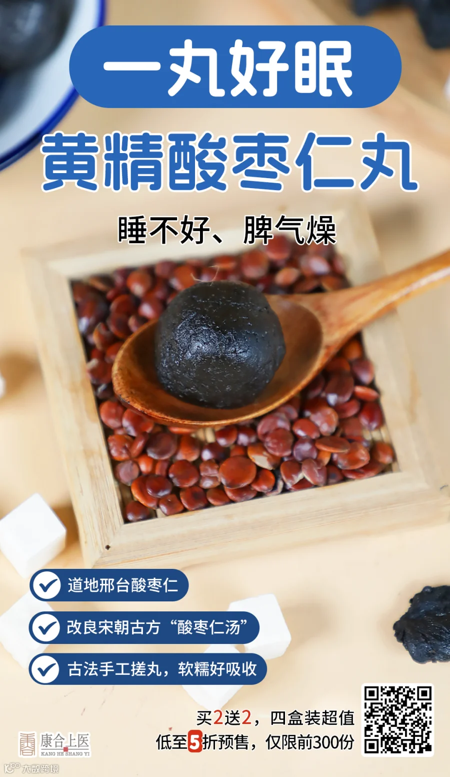 黄精酸枣仁丸,改良自宋朝张仲景“酸枣仁汤”的组方,保留了原配方中酸枣仁、茯苓2味食材,再辅以黄精、黑芝麻、桑椹、百合、桂圆、蜂蜜6味优质食材,使其更贴合现代人体质,尤其适合夏天心神不安、睡不安稳、晚上睡觉容易出汗的孩子和大人。