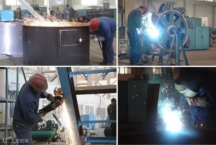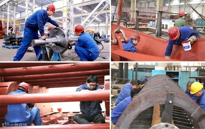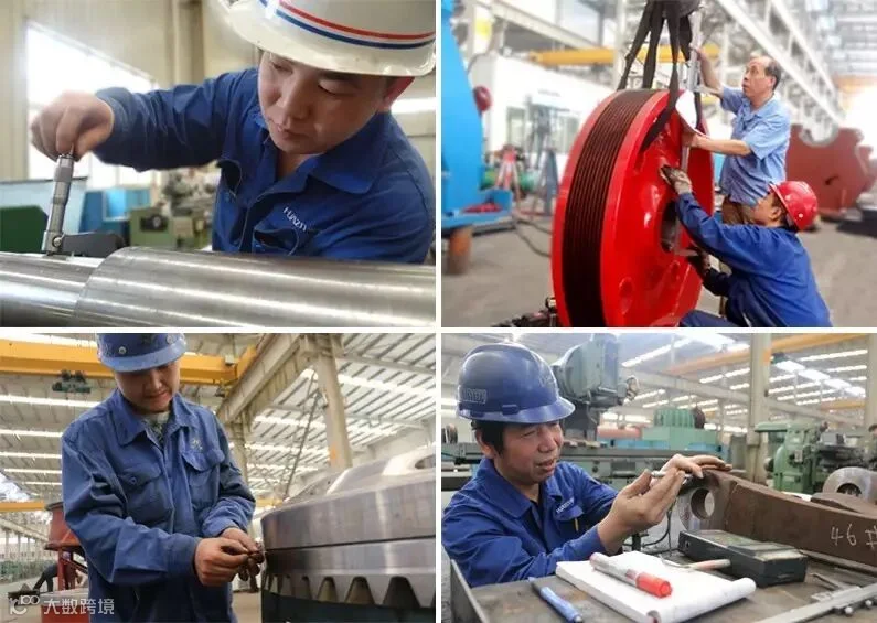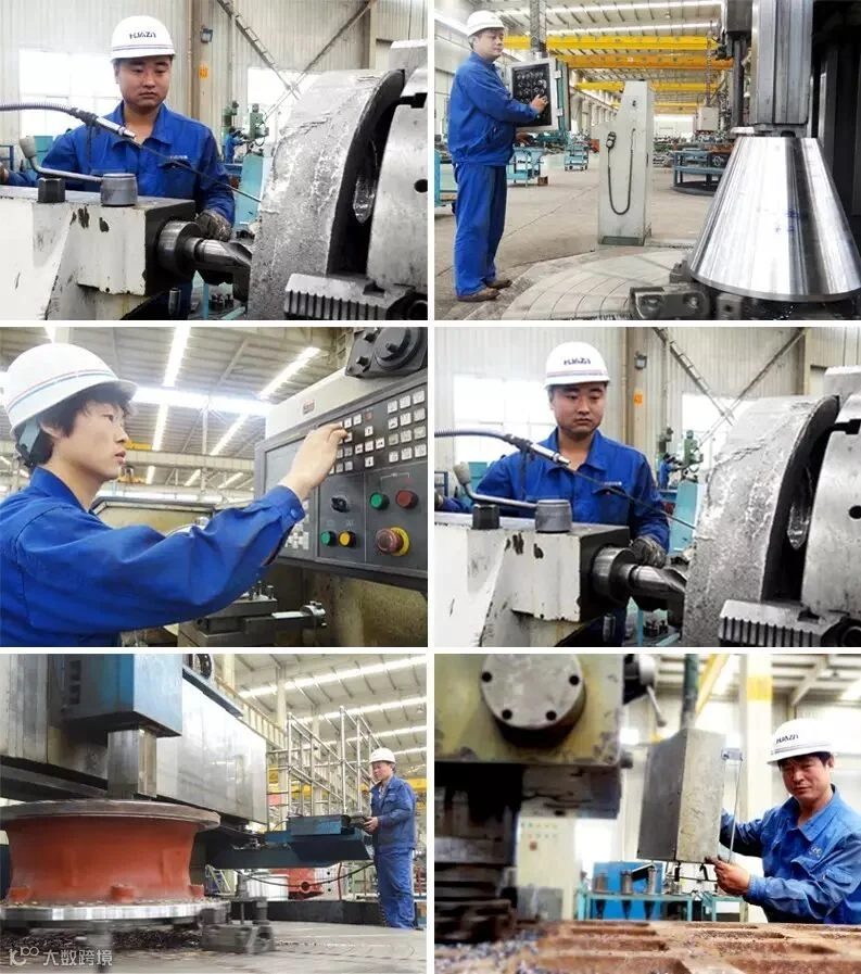 挥汗如雨的工人师傅们巧手打造的破碎机,