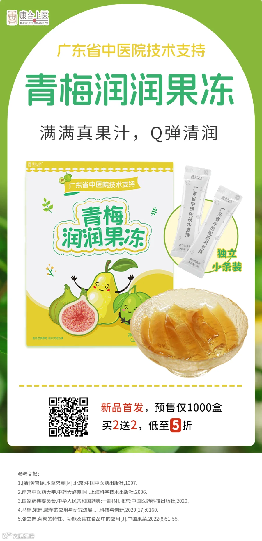 广东省中医院技术支持,专家教授团队特别研发了一款青梅润润果冻,清热消暑不伤脾,清润一夏,满满真果汁,Q弹酸甜,独立小条装,美味吸一吸!