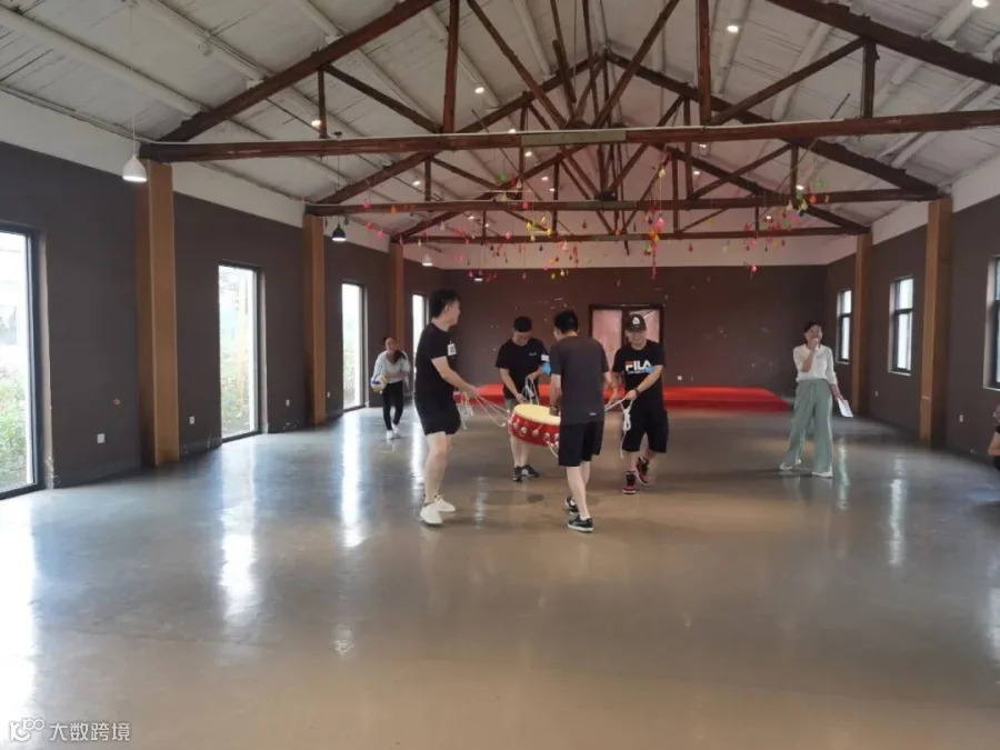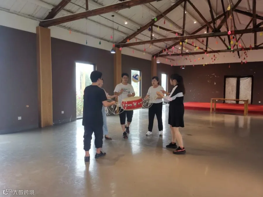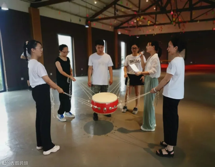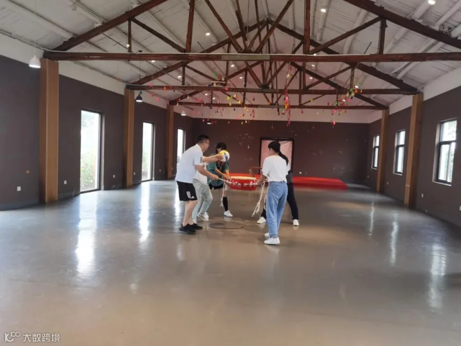 活动规则:五人团队,四人拉鼓绳垫球,一人放球,每组共5次机会,按垫球数从多至少排名,决出两组优胜队。团队的协作尤为重要,保证四个方位的受力均匀,放球的高度,力度,位置都值得团队成员共同商讨。