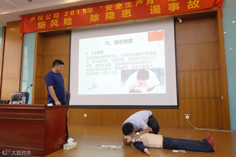 溺水抢救培训上,员工现场学习急救技能