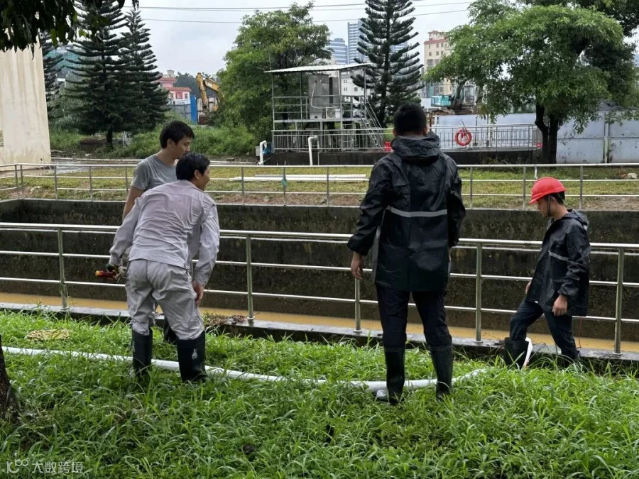 除了石马河片区分公司外,滨海湾片区分公司也受到台风“海葵”的强烈影响,于9月7日夜晚23:50,因地势较低,长安锦厦三洲一期泵房液位倒灌,导致提标厂区路面及部分电缆渠道积水。长安新区厂生产主管袁振辉、安全员凌锡滔、技术员殷家毅、邱利生组成的防汛团队迅速出击,立即前往长安锦厦三洲提标进行抢险救援。当时长安锦厦三洲提标出水口已出现溢流,路面积水高达10cm,现场环境非常恶劣、情况非常紧急。防汛团队经过研究商讨,根据实际情况联系一期项目进行减产,并组织现场值班人员利用抽水泵、沙袋等防汛物资进行抢险。经过5个小时的鏖战,长安锦厦三洲提标情况逐渐稳定并恢复生产。