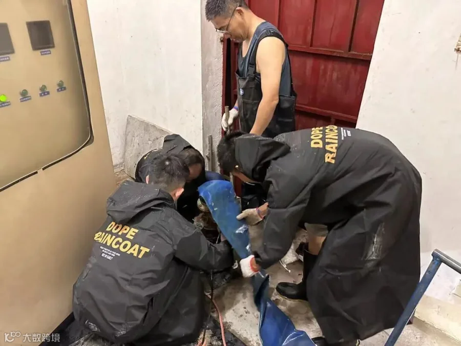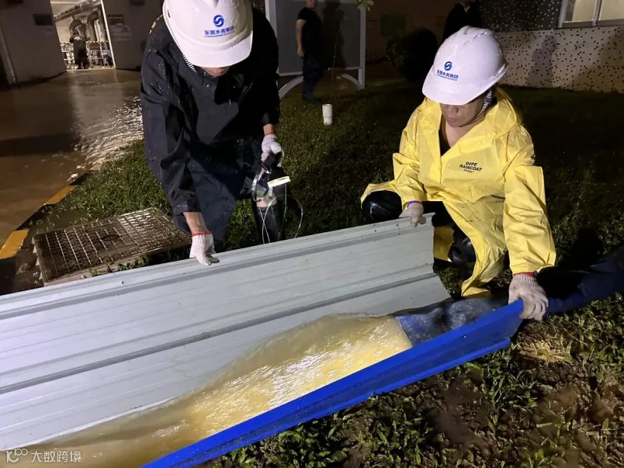 虾公潭厂区内,乔文迅速从家中赶回厂区,召集厂区留宿员工现场成立汛期抢险小组,带领厂区员工开展防汛抢险工作。安全员罗子聪及时为抢险人员发放劳保物资,并做好其他员工安置,确保人员安全;工艺技术员陈泽填迅速组织抢险人员放置防汛沙袋防止配电间浸水,转移生产药剂至地势较高处存放,同时对全厂设备进行断电保护;同时,厂区维修抢险人员迅速将移动式潜水泵放置在厂区设备电缆沟进行抽水,防止水位进一步上升,并时刻关注下水道及厂外河道情况。厂区员工众志成城,齐力抗灾,截至8日2时许,厂外河道水位下降,厂区道路积水排除,厂区逐步恢复生产。