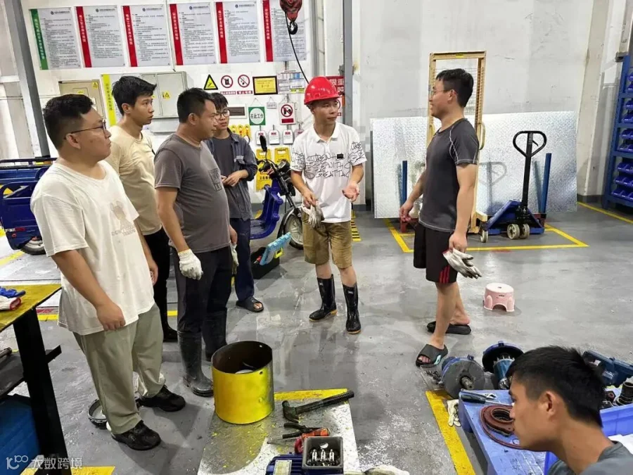 9月8日10时,河水水位下降、厂区积水逐渐退去,为尽快恢复运营项目生产,做好设备抢修工作,石马河片区分公司总经理殷国财在项目现场指挥部署抢修工作,迅速制定抢修方案,要求片区各运营项目迅速抽调维修人员支援灾后抢修作业,通过公司运营管理部协调从其他片区分公司派维修人员驰援抢修现场,并随即成立抢修复产工作小组,从设备抢修、电路恢复、生产区域排水和后勤保障工作等多方面全面铺开抢修复产工作。