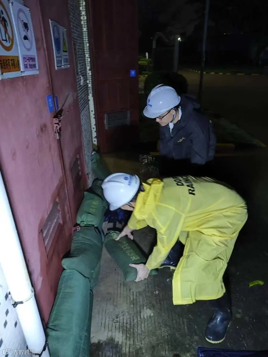 期间,凤岗镇持续受大暴雨侵袭及上游泄洪影响,9月7日22时,河水水位迅速暴涨,凤岗虾公潭厂、凤岗竹塘一二期项目出现河水倒灌,尤其凤岗竹塘项目的建筑物处在低洼地区,厂区内多处关键设备遭受河水冲击,无法正常生产。对此,以上项目立刻启动应急处理措施,全区域进行停电停产,并对配电房等重点设备设施区域加强关注,及时排涝。