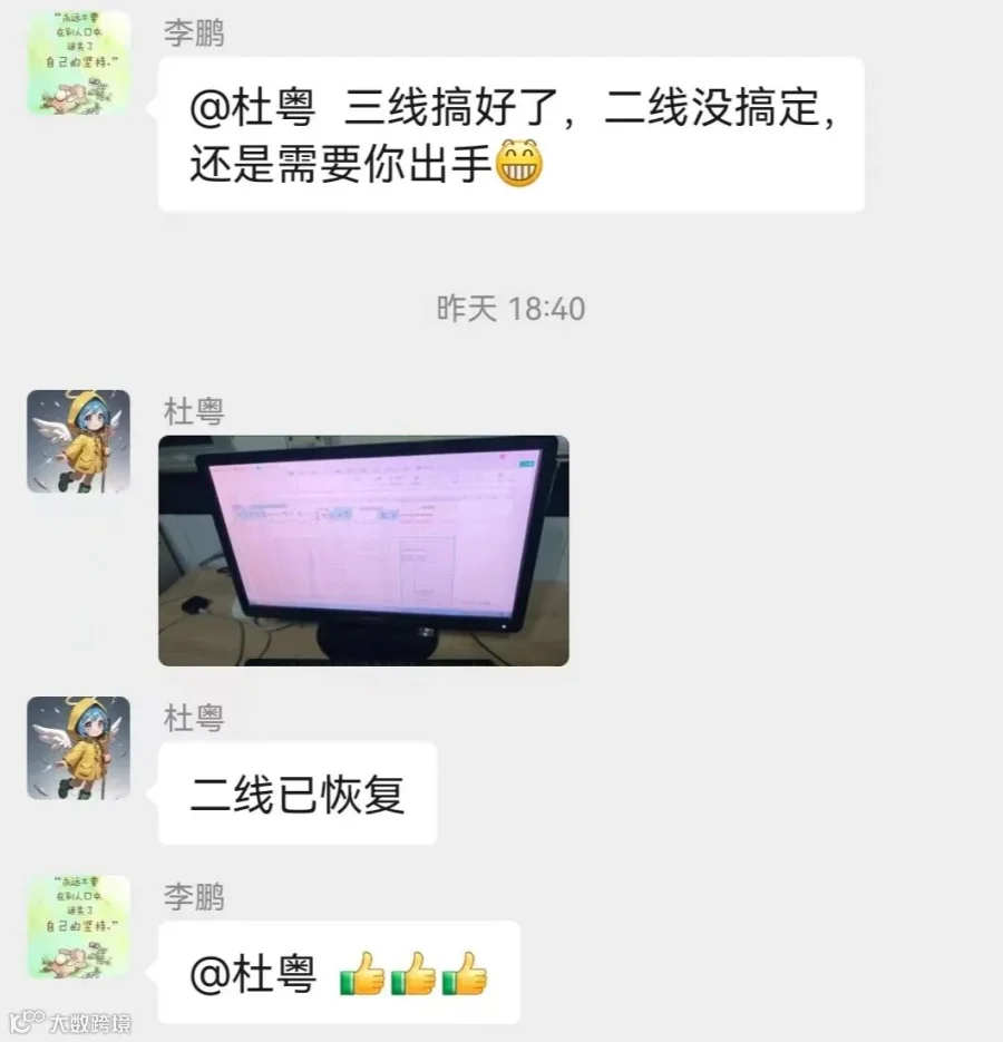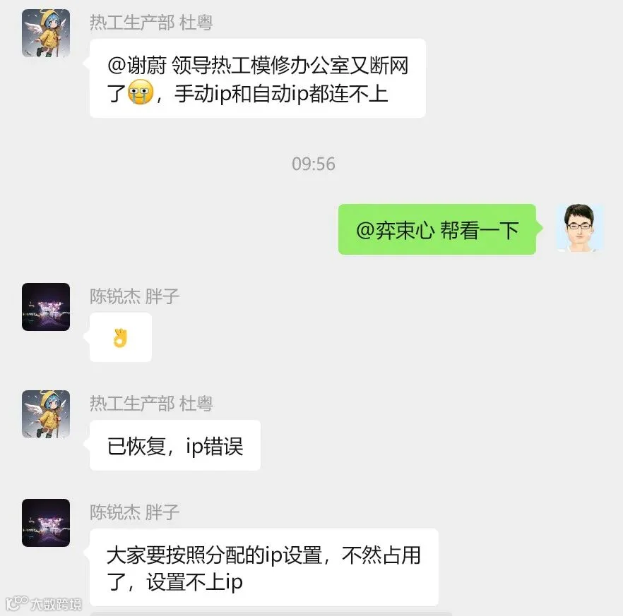 11 8月23日构造改革室陈锐杰帮助铸造杜粤快速解决网络问题。