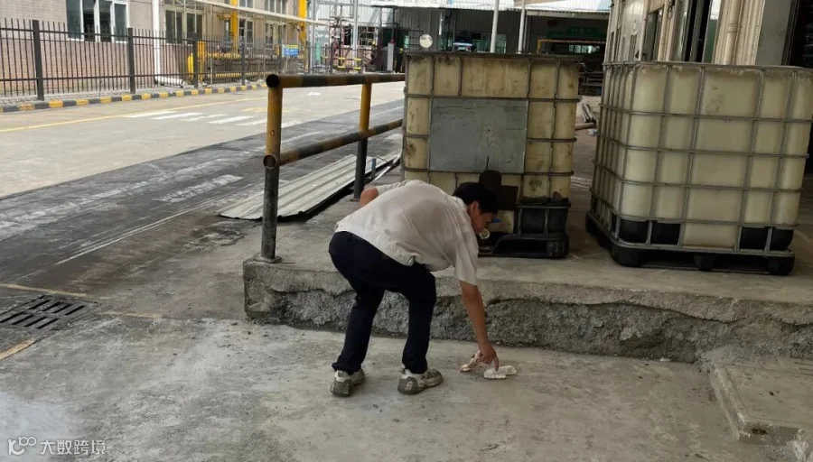 04 8月21日销售&采购部阮汝丽在斑马线提醒过往人员及叉车注意安全。