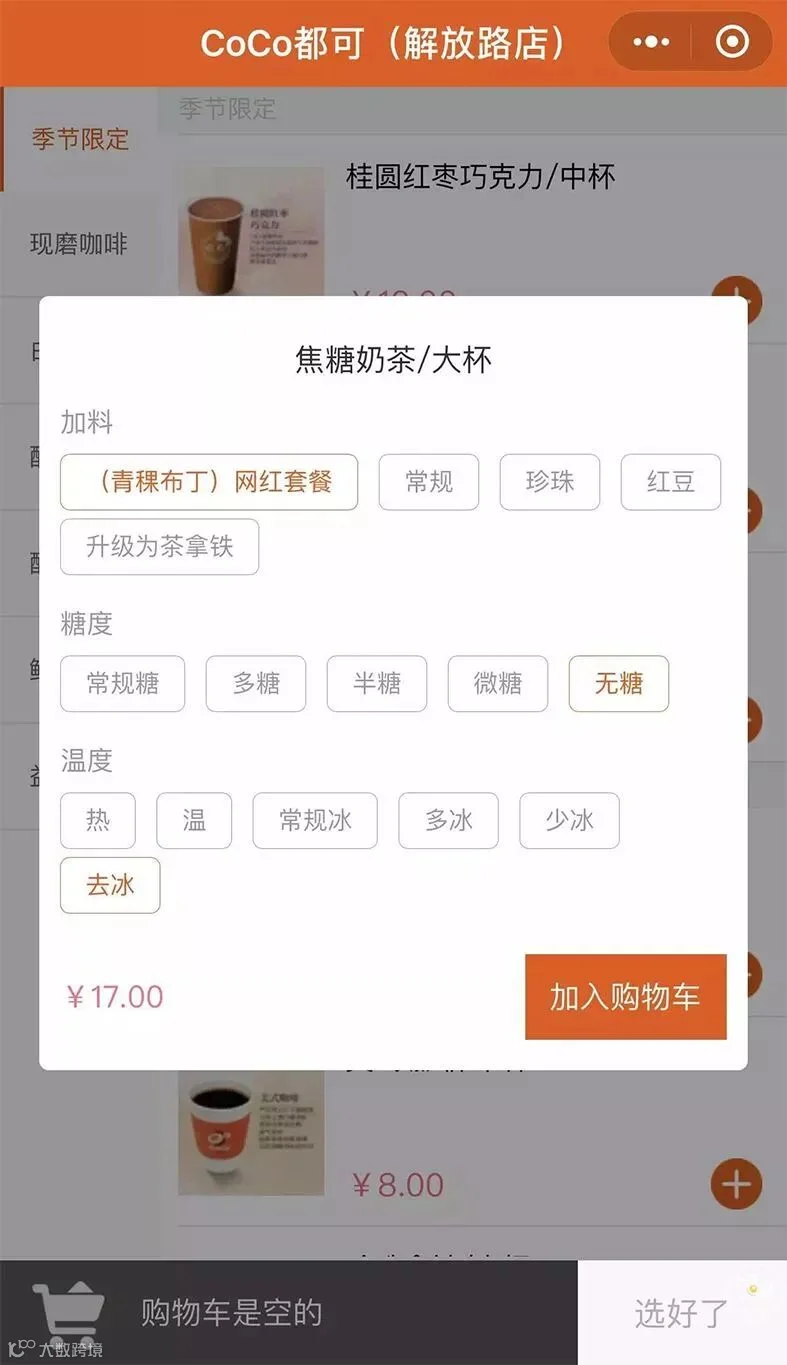 将这款“焦糖奶茶+布丁+青稞+少冰+无糖”的