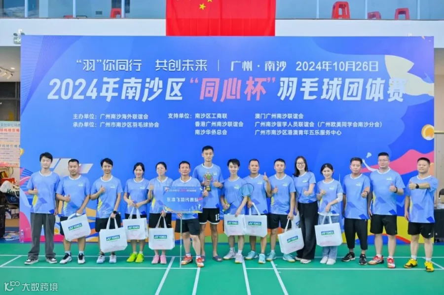 10月26日,由广州南沙海外联谊会主办的2024年南沙区“同心杯”羽毛球团体赛在南沙达洋体育中心举行。16支代表队伍共150余名参赛选手齐聚一堂,在男双、混双、男双项目中展开精彩对决。东凌控股集团派出的“东凌飞羽代表队”不负使命、团结一心、顽强拼搏,最终勇夺赛事第六名的佳绩,充分展现了东凌人昂扬向上的风采和奋勇争先的精神,为集团赢得了荣誉和光彩。