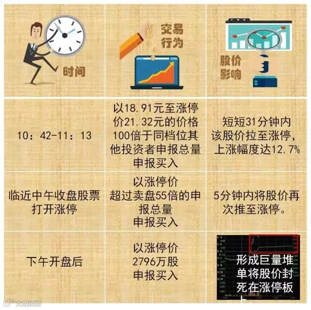 不法分子利用投资者“追涨”的心理,人为制造“涨停板”,吸引投资者跟风买入推高股价,一旦操纵者获利出逃,股价就会失去支撑,甚至出现持续暴跌,使追高买入的中小投资者成为“接盘侠”。