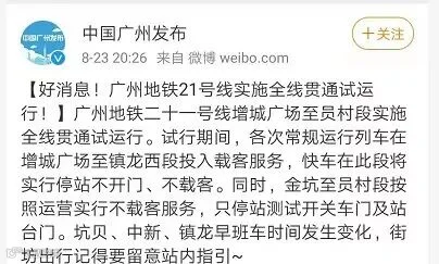 广州地铁21号线增城广场至员村段实施全线贯通试运营!