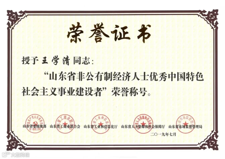 7月12日上午,第七届山东省非公有制经济人士优秀中国特色社会主义事业建设者表彰大会暨民营企业服务全省高质量发展经验交流会议在济南举行。省委书记刘家义出席会议并讲话,省委副书记、省长龚正主持,省政协主席付志方出席。会议宣读了表彰决定,公布了第七届非公有制经济人士和新的社会阶层人士“山东省非公有制经济人士优秀中国特色社会主义事业建设者”获奖者名单,山东寿光鲁清石化有限公司党支部书记、董事长王学清获此殊荣。
