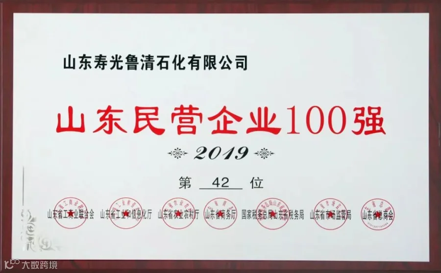 会上,发布了2019山东民营企业100强名单,山东寿光鲁清石化有限公司名列第42位。至此,山东寿光鲁清石化有限公司已经连续6年获得山东民营企业100强荣誉称号。