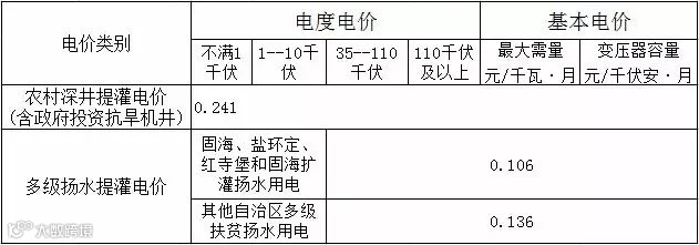 3.宁夏多级扬水和深井提灌电价表