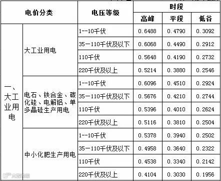 宁夏电网峰谷分时电价表(单位:元/千瓦时)