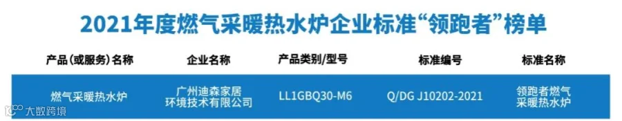 以标准领跑|迪森荣获2021年燃气采暖热水炉企业标准“领跑者”称号