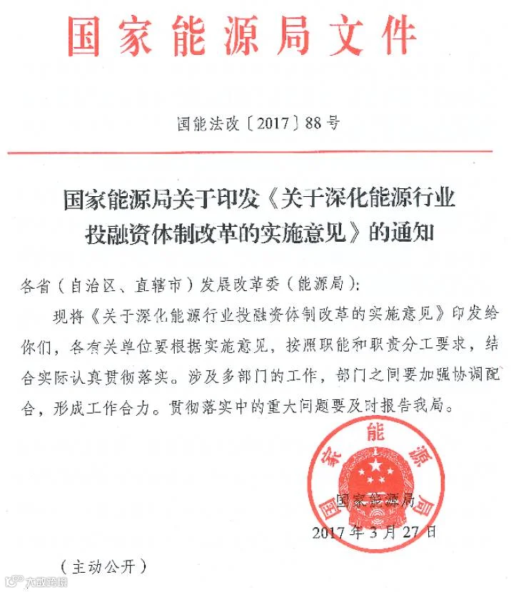 能源局近日印发《关于深化能源行业投融资体制改革的实施意见》(下称《意见》),提出了充分激发社会资本参与能源投资的动力和活力、发挥好能源行业政府投资的引导和带动作用、畅通能源投资项目融资渠道等实施意见。