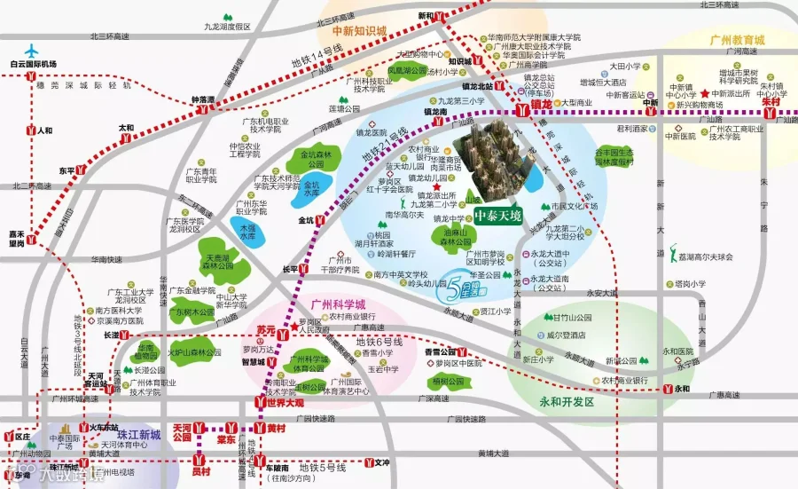 黄埔路线:萝岗中心区-永和大道-永龙大道-兴龙大道左转-直行200米-中泰天境销售中心