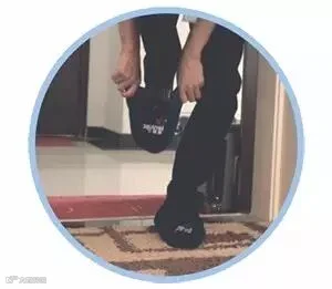 先穿一只鞋套,踏进用户家,再穿另一只鞋套,踏进用户家门。