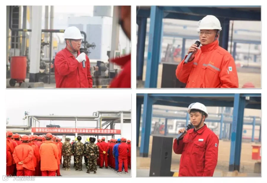 指挥部崔立勇、朱永红、陈鹏飞分别对对本次演练做点评,指出存在不足。点评强调,演练即实战,每位职工要在演练中积累经验,运用到实际的应急救援工作中去,切实提升企业安全水平。