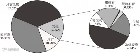 不同城市的工业企业数量都大幅增加,并且还呈现出进一步增加的趋势,相应的工业固废量也表现为持续增多的状态,以某城市工业固废调查为例,其产生构成比例如图1所示。在进行工业固废处理处置时,普遍存在工业固废资源化利用率较低、工业固废利用率地区差异明显、工业固废利用率行业差异明显等问题。部分城市工业固废利用率明显低于全国水平,以上述城市为例,其尾矿和磷石膏产生量大,利用率低对整体工业固废资源化利用率的提升产生明显的制约,因此急需进一步提升工业固废处理处置水平。