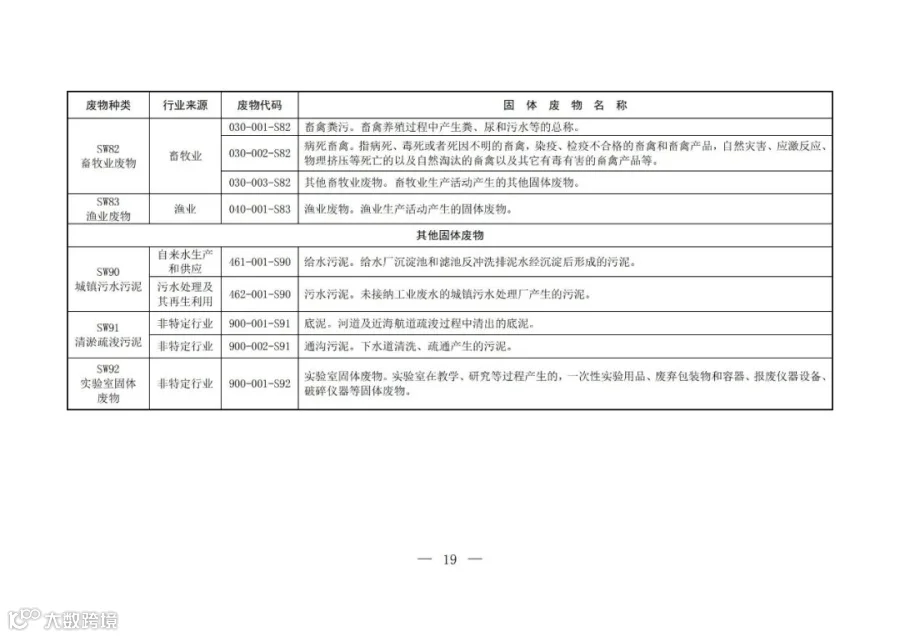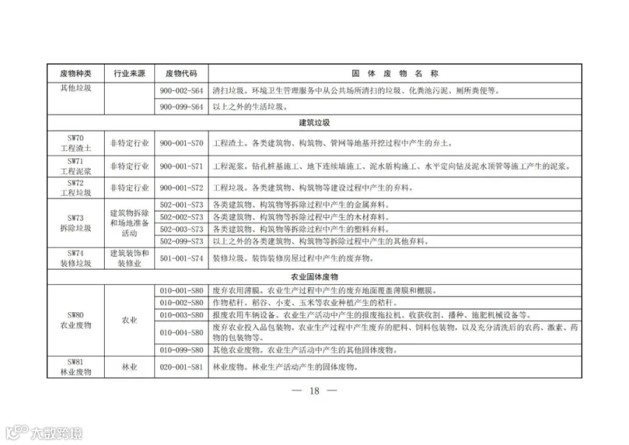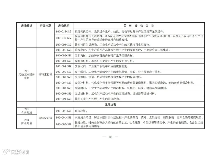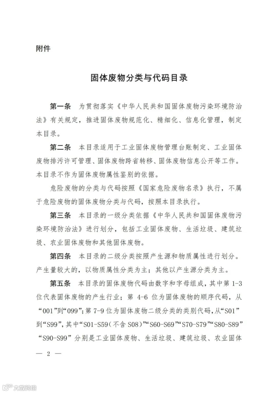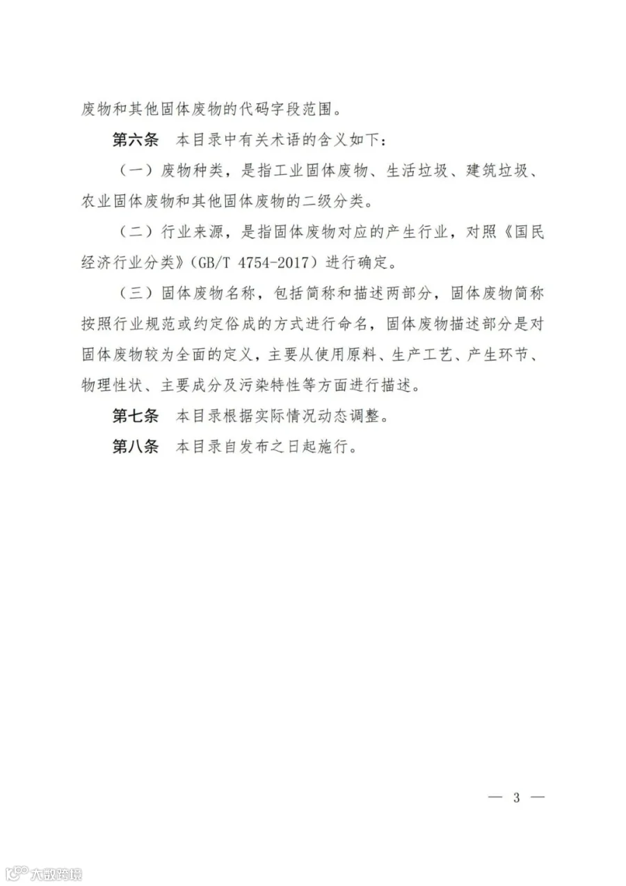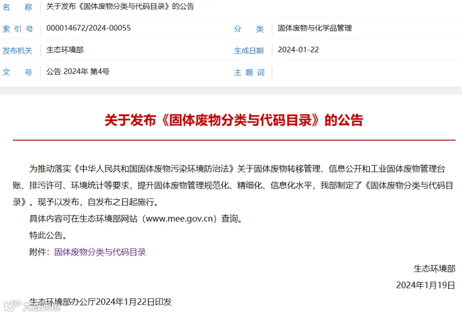 生态环境部关于发布《固体废物分类与代码目录》的公告