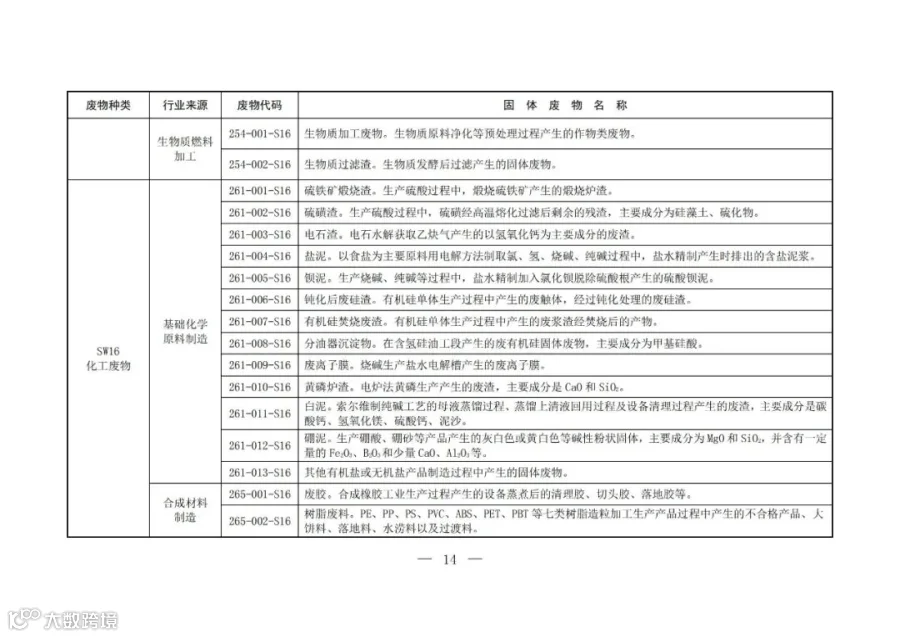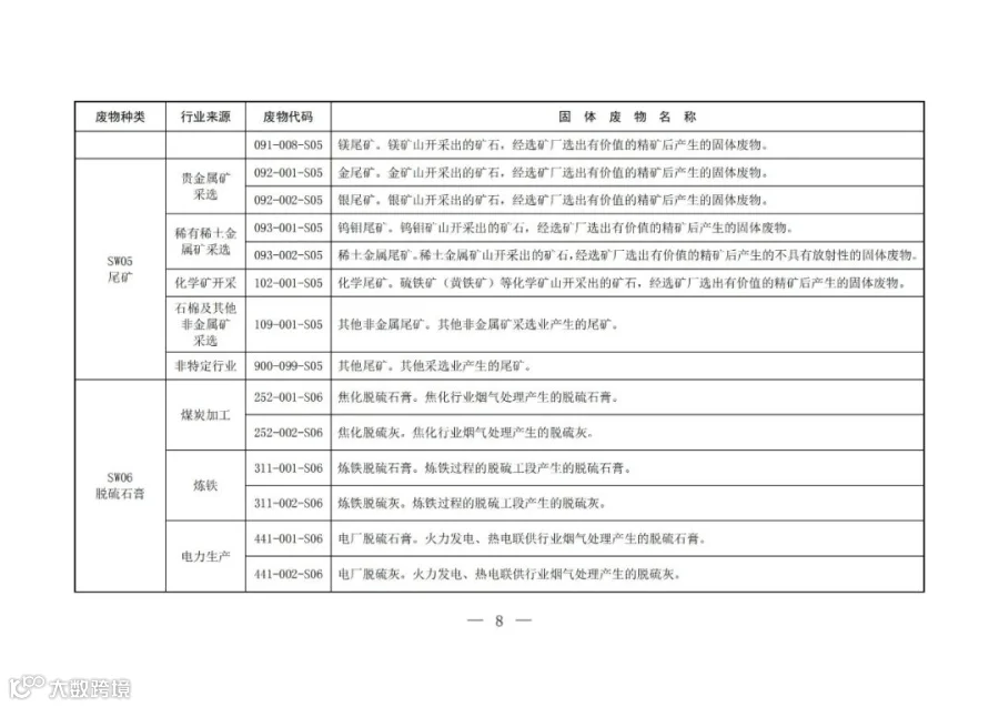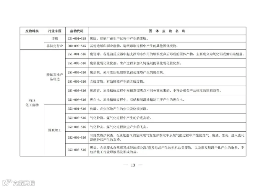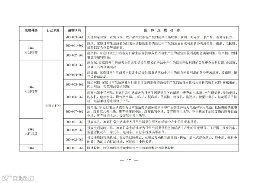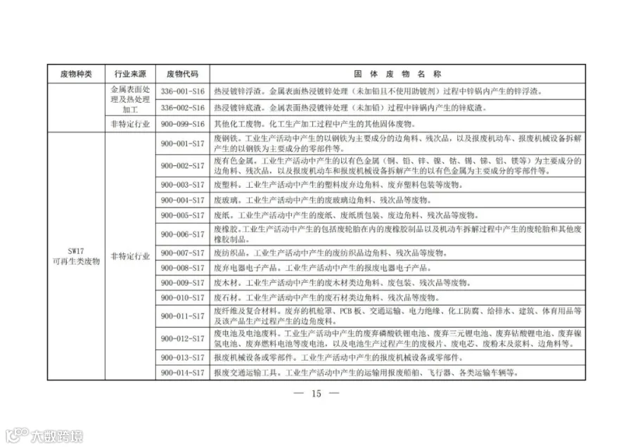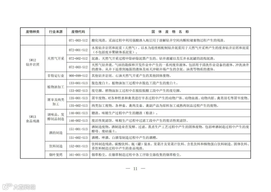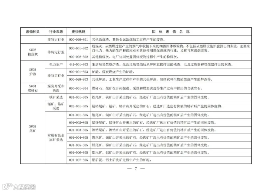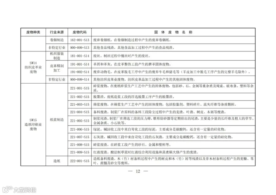 生态环境部关于发布《固体废物分类与代码目录》的公告