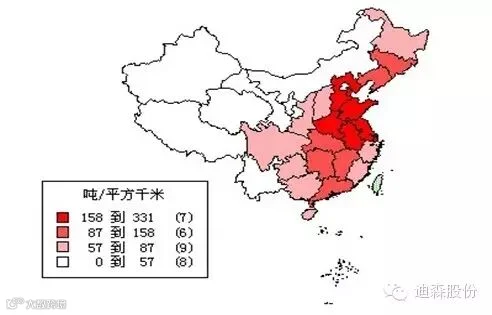 图1 2005年我国单位国土面积的秸秆资源量