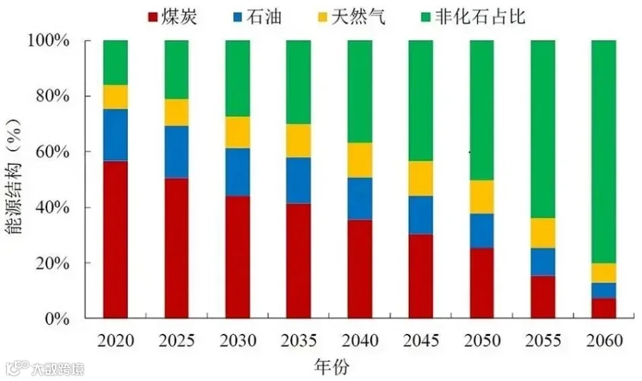 电力行业。建议电力行业在2029年前实现碳达峰,峰值不超过45亿吨CO2,继续扩大风电、太阳能发电的装机容量,实现以新能源为主体的新型电力系统建设,但同时保留一定比例的火电,并加装CCS,用于灵活性调峰电源和安全保障,电力行业2060年前应实现近零排放。