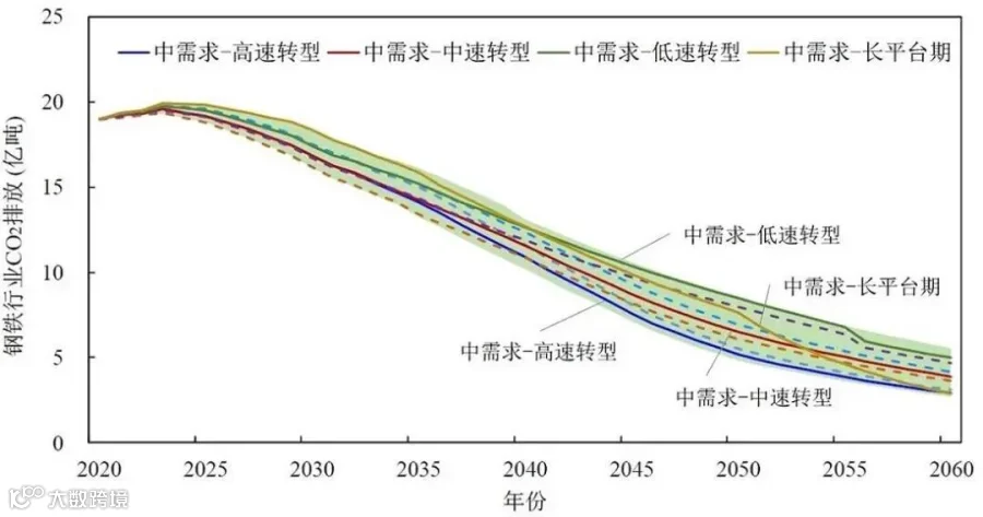 图7 钢铁行业CO2排放量预测(2020—2060年)