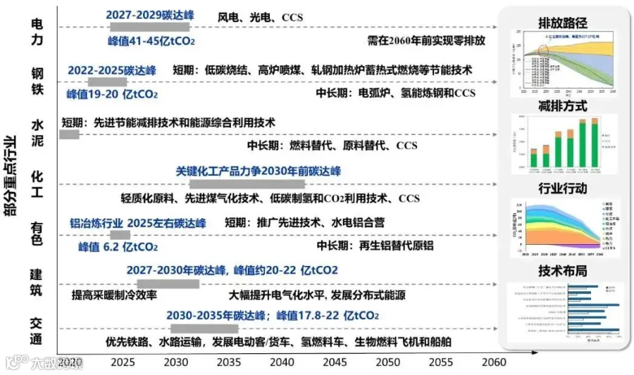 图19 重点行业碳达峰碳中和时间表和路线图