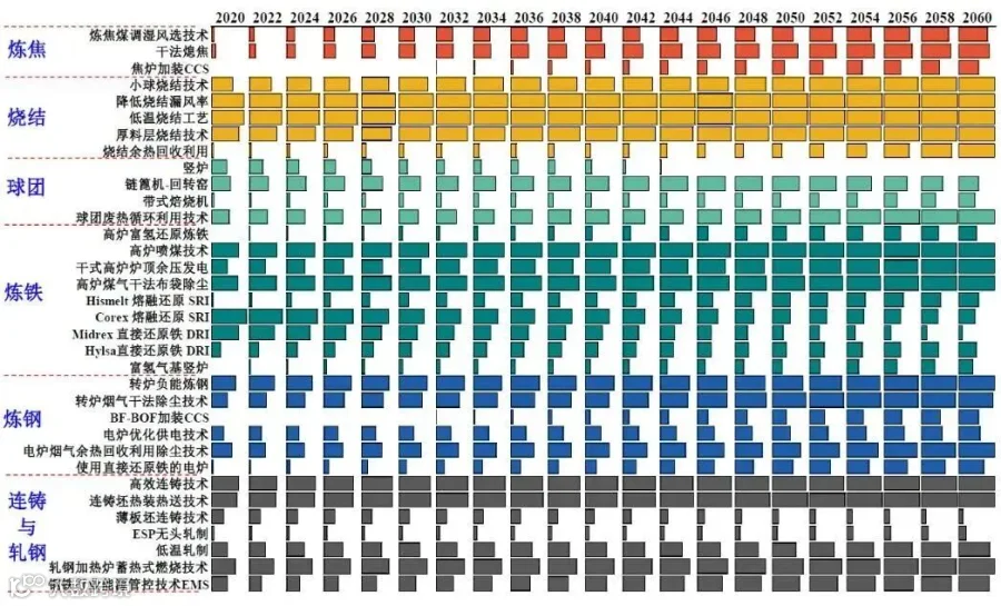 图8 钢铁行业低碳技术市场占有率(2020—2060年)