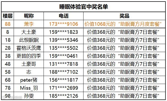 恭喜上述用户获得睡眠体验官资格!之后会有健康顾问致电确认后续服务,请留意。