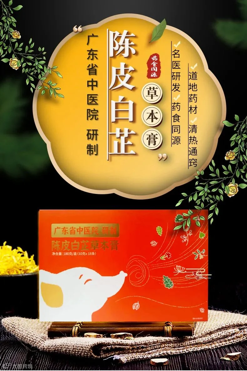 陈皮白芷草本膏由广东省中医院研制,组成包括五指毛桃、桑葚、薏苡仁、陈皮、菊花、白芷、紫苏叶、乌梅等。