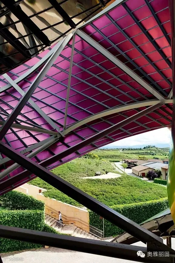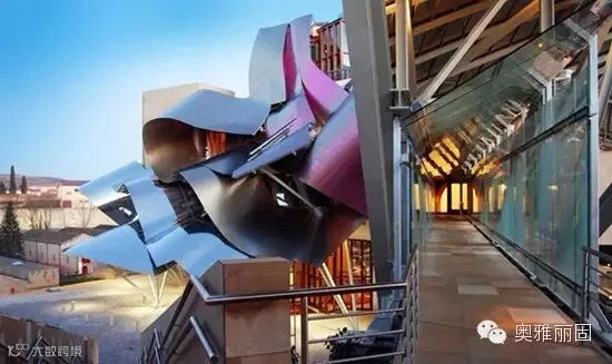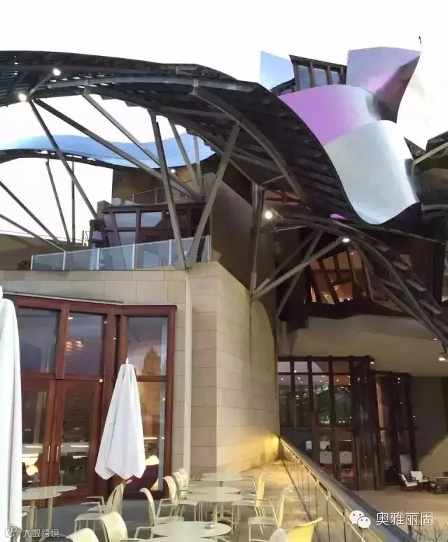 该酒厂现代感的线条和钛钢的结构,完全呼应了博物馆的设计,好像是古根海姆博物馆的回音。