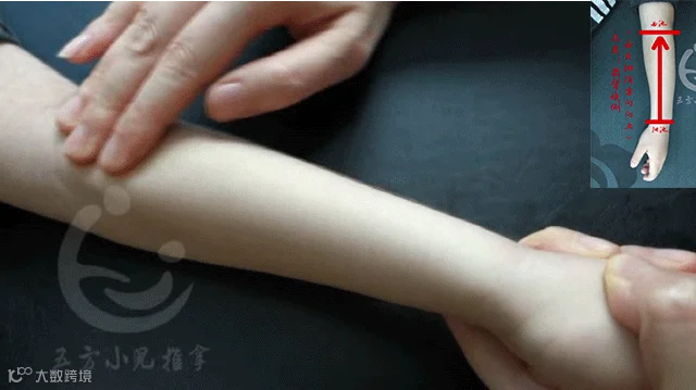【定位】:在前臂桡侧缘,从腕横纹到肘横纹呈一条直线。