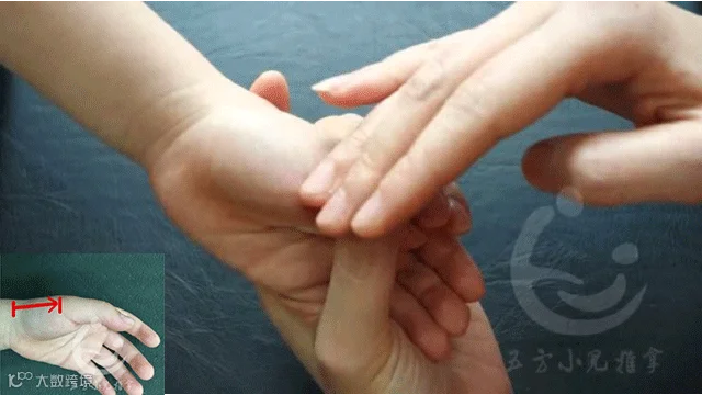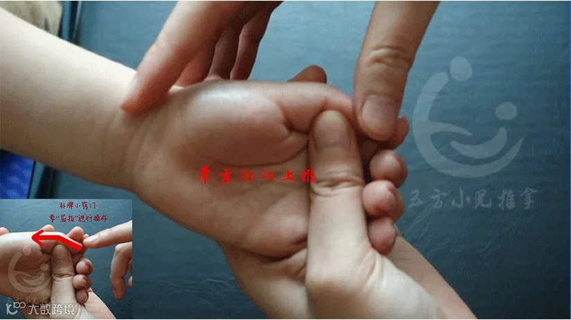 【操作】:用拇指螺纹面在穴位上做来回方向的推动。